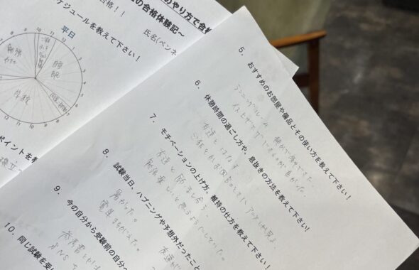 勉強カフェは大人の勉強場所ですが、西宮北口では受験生の方も多くご利用いただき、毎年たくさんの方が合格されています。
